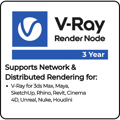Compatible con renderizado distribuido y en red en V-Ray para 3ds Max, V-Ray para Maya, V-Ray para Cinema 4D, V-Ray para Houdini, V-Ray para Nuke, V-Ray para Unreal, V-Ray para SketchUp, V-Ray para Rhino y V-Ray para Revit.